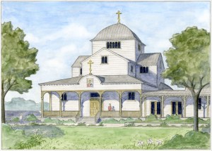 The plaster walls of the properly Orthodox temple Andrew designed and we hope to build, will also receive icons in the future: