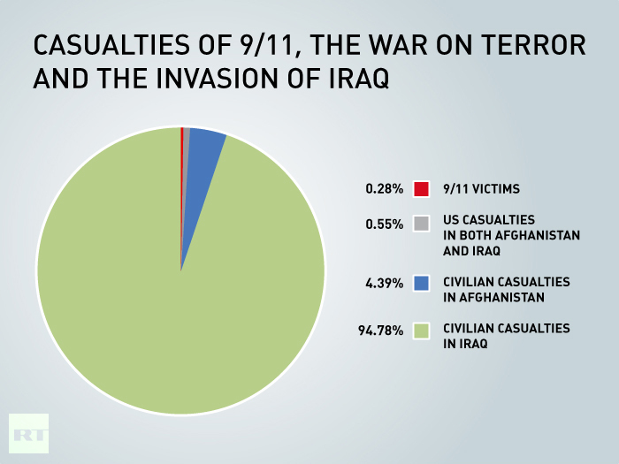 Speaking of killing foreigners, Marc Bousquet at the Brainstorm blog charts civilian casualties of 9/11, the war on terror and the invasion of Iraq. Read it and get sober: