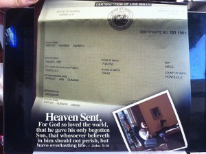I’m less certain after seeing this piece of Democrat kitsch, the calendar picture for August 2013, the 52nd anniversary of this birth certificate: