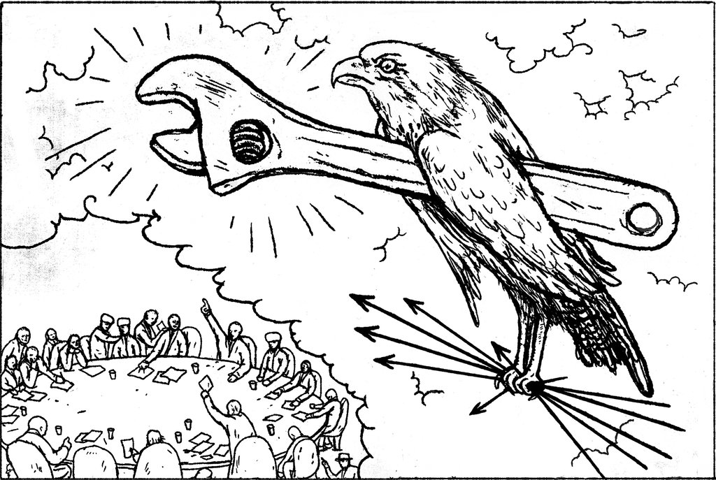 New York Times editorializes “Don’t Undermine the Iran Deal.” Meanwhile, the illustration screams “Don’t Crescent-Wrench the Iran Deal.”
