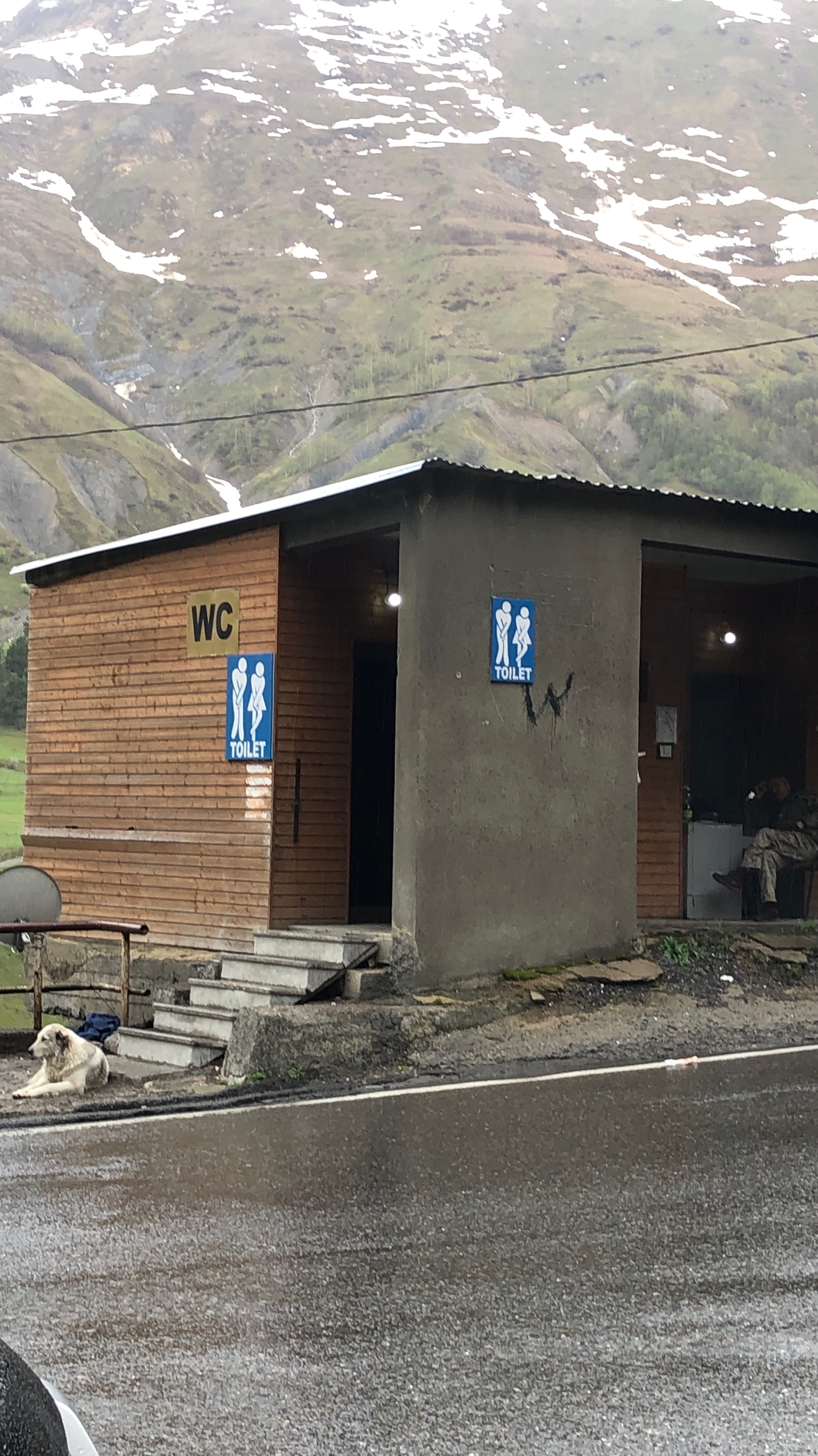As long as I’m (uncharacteristically) embedding images, this favorite from the nation of Georgia. There was much, much beauty there, but this gritty, grimy vista along the road from Tbilisi to Stepantsminda was unique: