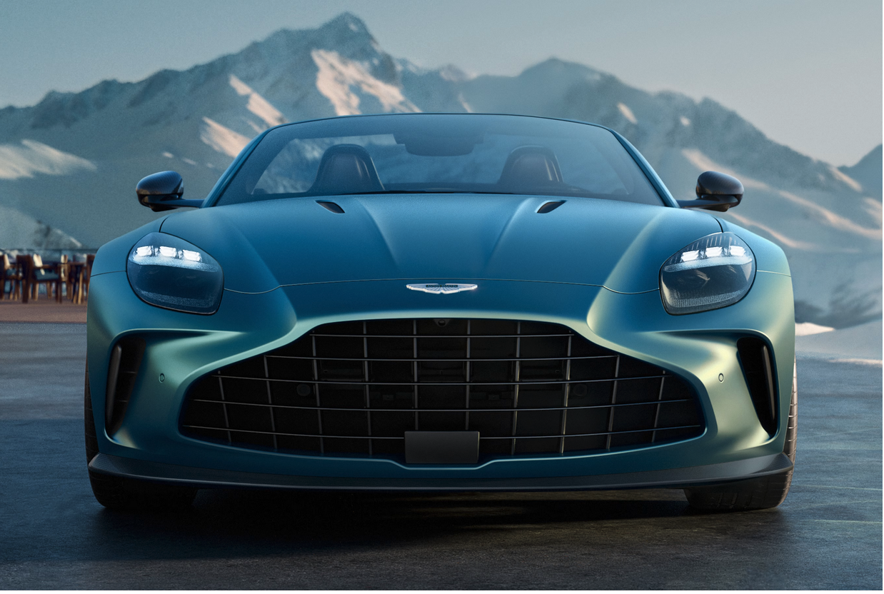 “Behind that catfish smile, the company’s twin-turbo 4.0-liter DOHC V8 now discharges a drama-drenched 656 hp and 590 lb-ft—153 hp and 85 lb-ft more than the previous Vantage Roadster—thanks to larger turbochargers, revised camshaft profiles, optimized compression ratio and upgraded fueling and cooling.”
