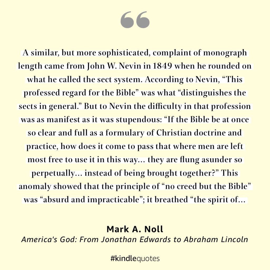 [L]iving by no rule but the Bible turned out to be a defense against virtually the same list of enemies as living up to the standards of republicanism: “Many are republicans as to government, and are yet half republicans, being in matters of religion still bent to a Catechism, creed, covenant, or a superstitious priest. Venture to be as independent in things of religion as in those which respect the government in which you live.” Few Protestants expressed themselves as flamboyantly as [Elias] Smith in the early republic, but most followed where he led.