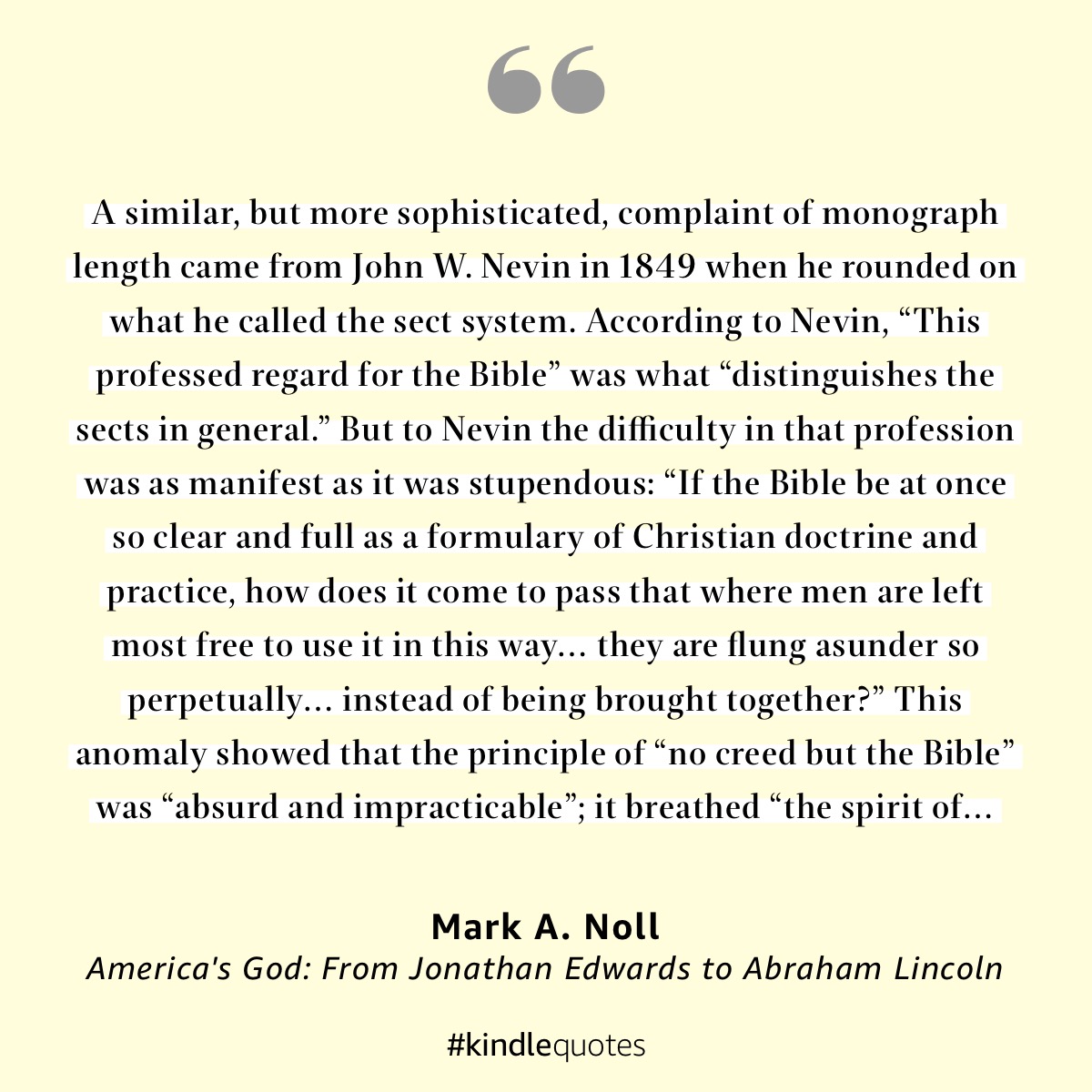 [L]iving by no rule but the Bible turned out to be a defense against virtually the same list of enemies as living up to the standards of republicanism: “Many are republicans as to government, and are yet half republicans, being in matters of religion still bent to a Catechism, creed, covenant, or a superstitious priest. Venture to be as independent in things of religion as in those which respect the government in which you live.” Few Protestants expressed themselves as flamboyantly as [Elias] Smith in the early republic, but most followed where he led.